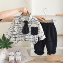 Make a bold fashion statement with this eye-catching and instantly trendy two-piece set for little boys. Featuring a unique, all-over black and white graffiti print shirt complete with a pre-tied fashion tie and a sleek pocket detail, this outfit is paired with comfortable black elastic-waist trousers. It’s the perfect combination of street style and formal flair.